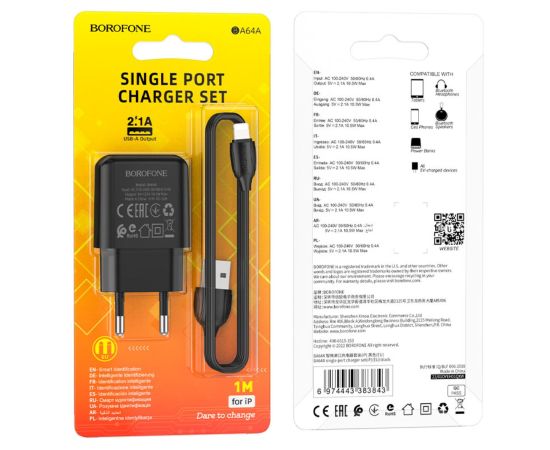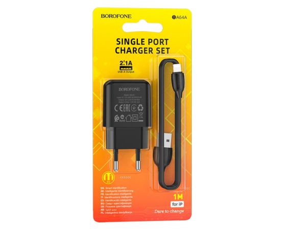 СЗУ Borofone BA64A Single port charger set Lightning (EU) (черный)