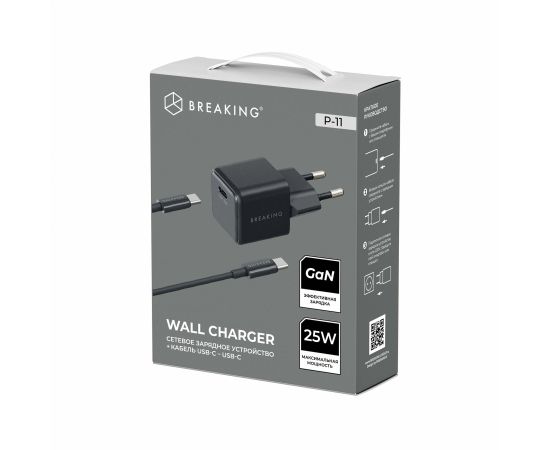 СЗУ Breaking P-11, USB-C, GaN 25W, 3A + кабель USB-C - USB-C (Черный)
