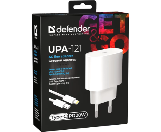 СЗУ DEFENDER UPA-121 20W, USB C, Lightning, белый (83223)