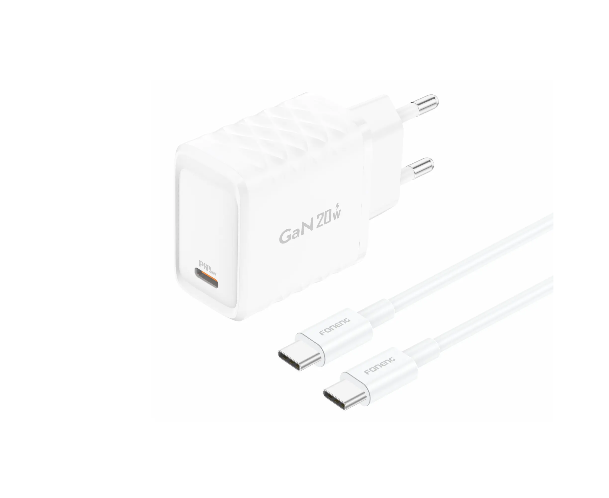 СЗУ Foneng EU55 GaN, PD20W + (Type-C to Type-C) (White)