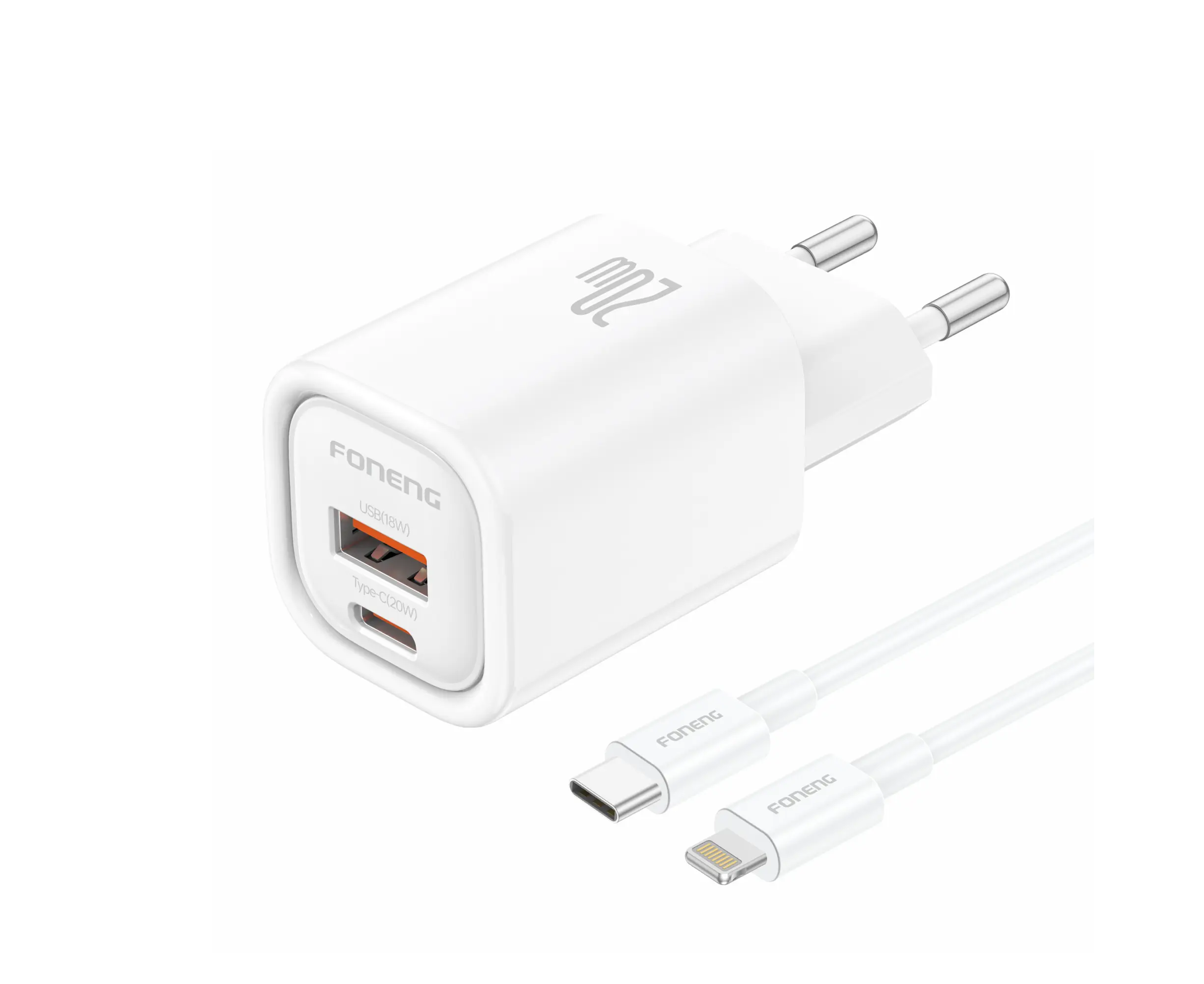 СЗУ Foneng EU70 USB-A / USB-C, PD20W + кабель Type-C to Lightning (White)