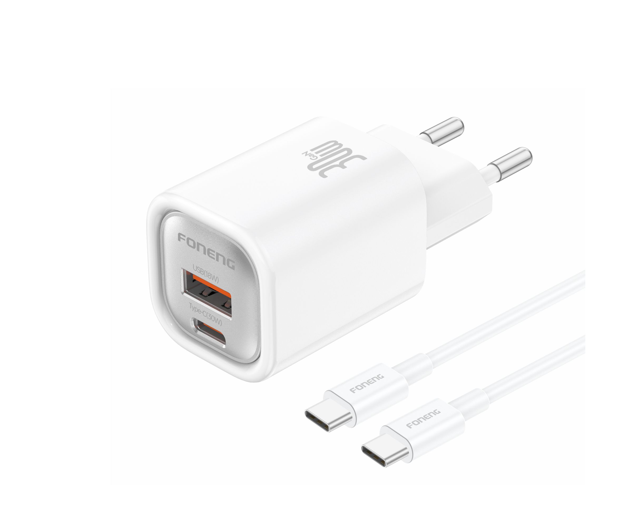 СЗУ Foneng EU71 USB-A / USB-C, PD30W + кабель Type-C to Type-C (White)
