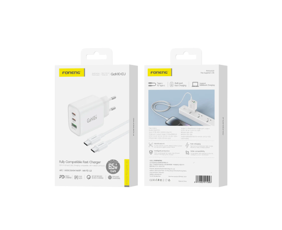 СЗУ Foneng GaN10, A+C+C 3- Port GaN Charger + PD65W (Type-C to Type-C) (White)