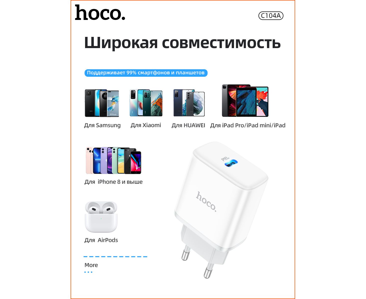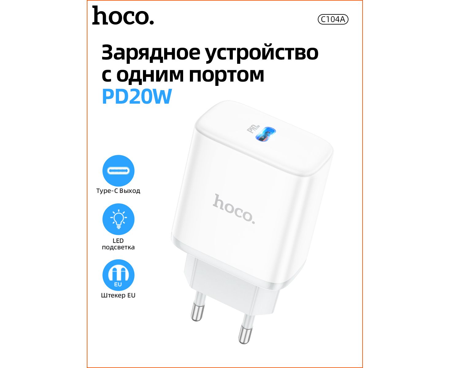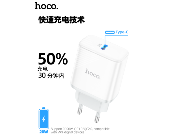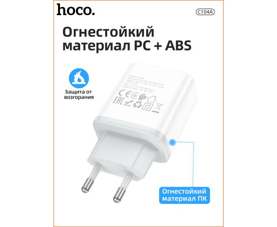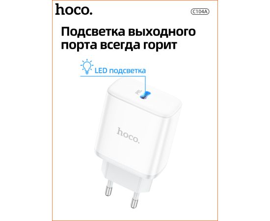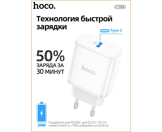 СЗУ HOCO C104A Stage, 1USB, PD20W (белый)