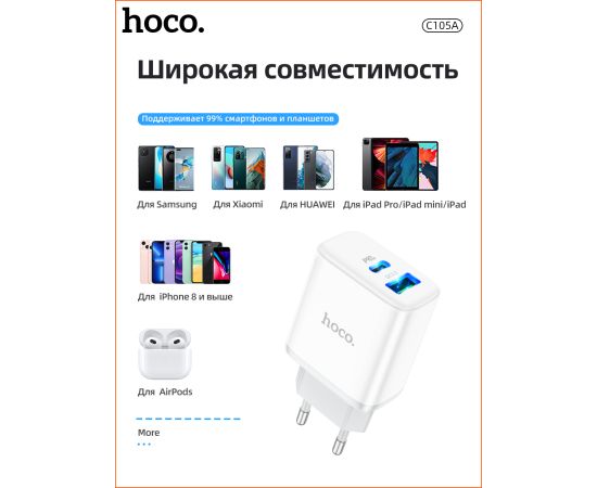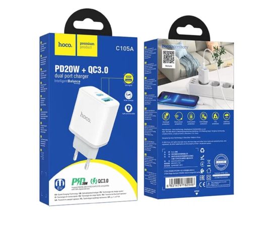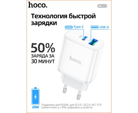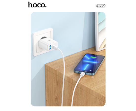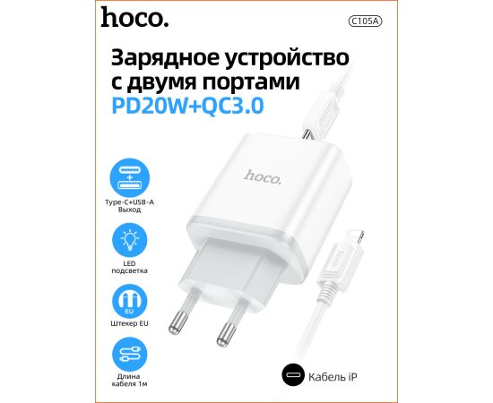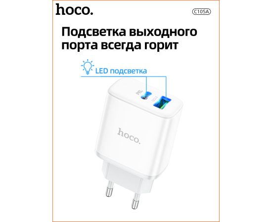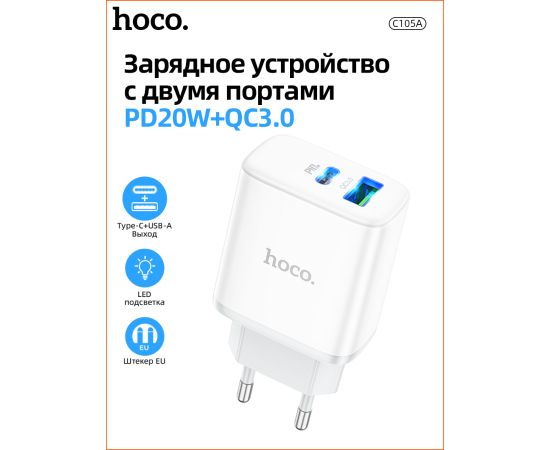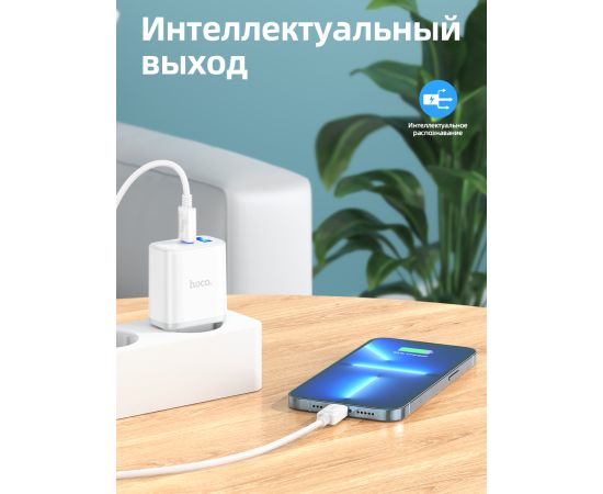 СЗУ HOCO C105A Stage, 2USB, PD20W, QC3.0, Type-C + lightning (белый)