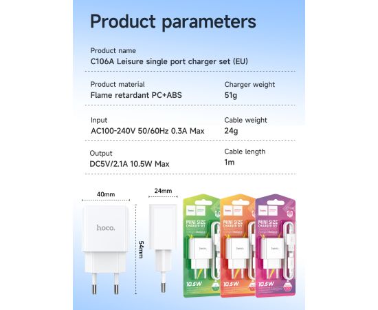 СЗУ HOCO C106A Leisure, 1USB + Micro (EU) (белый)