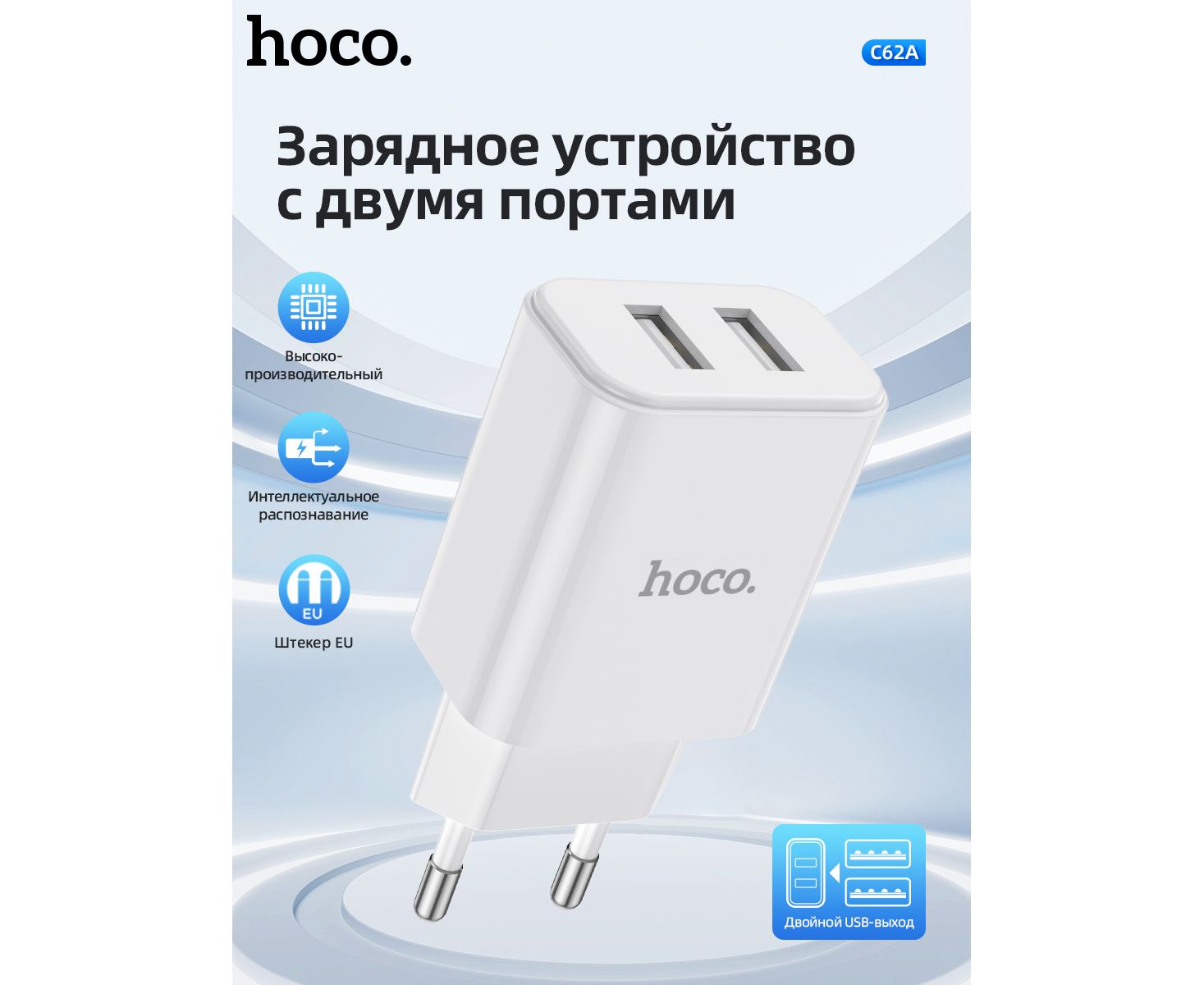 СЗУ Hoco C62A Victoria dual port 2.1A, white