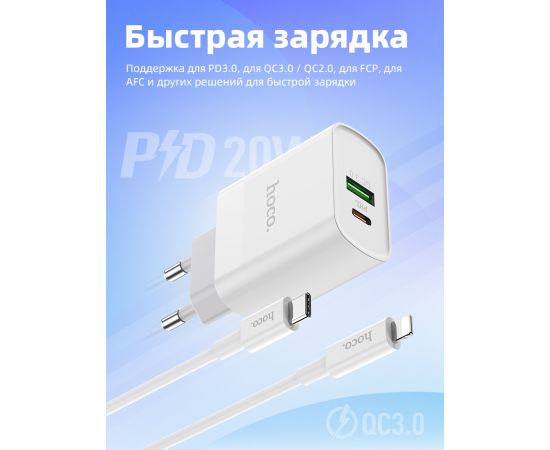 СЗУ Hoco C80A Rapido PD+QC3.0 charger set(Type-C to Lightning), white