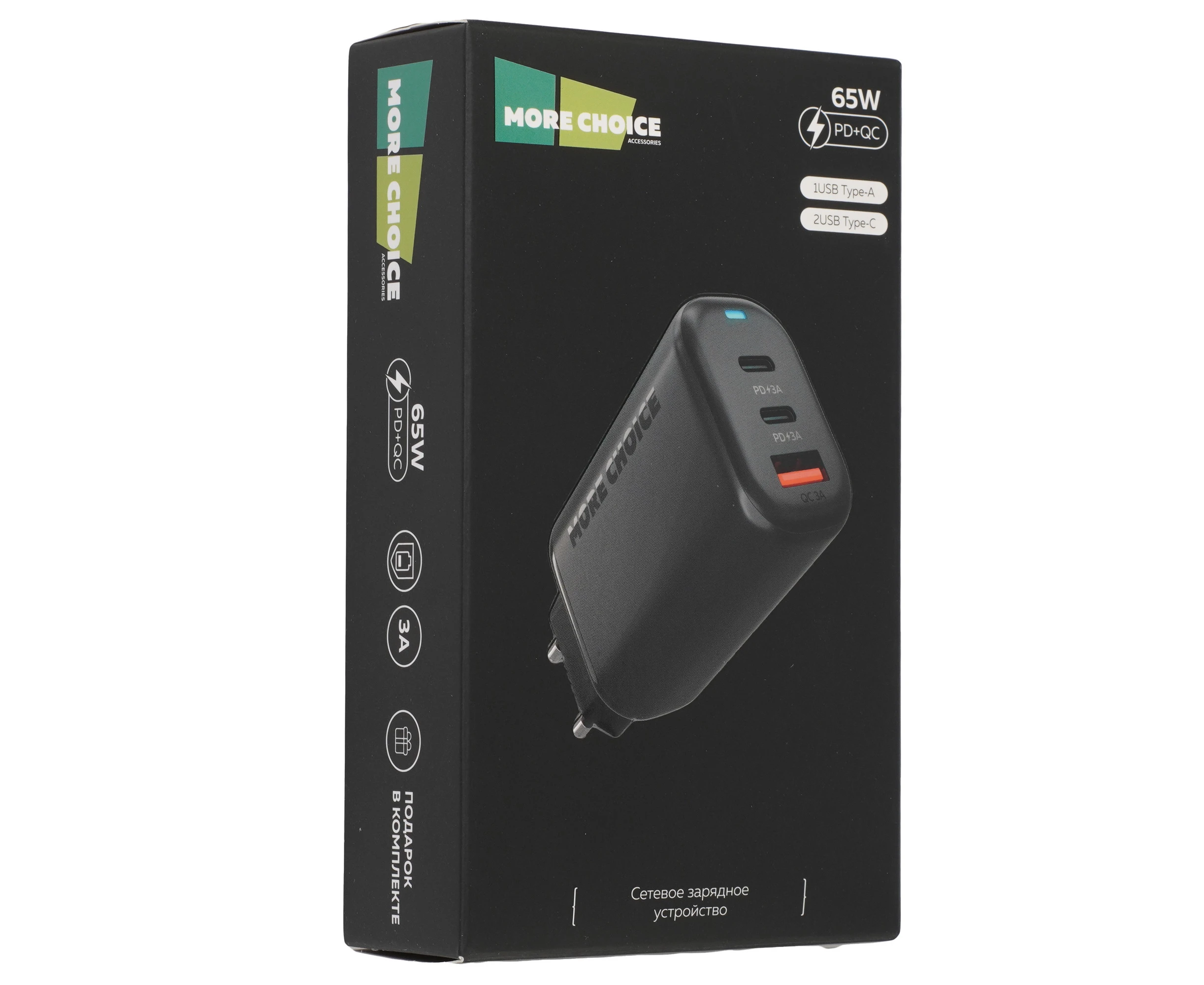 СЗУ More Choice NC79 1USB+2Type-C 3.0A PD 65W быстрая зарядка Black