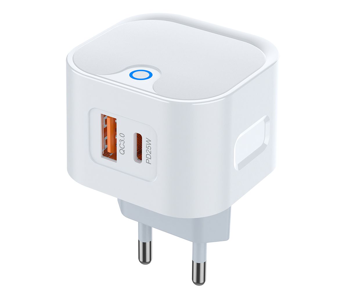 Сетевое зарядное устройство PERO TC21 оснащено 2-мя USB-портами — USB-А с выходным током до 3А и USB-C с функцией быстрой зарядки Power Delivery, мощностью 25W. СЗУ имеет функцию fast charge и защиту от перегрузок и перегрева. Входное напряжение: 110-240В, 50-60Гц. Цвет: белый.