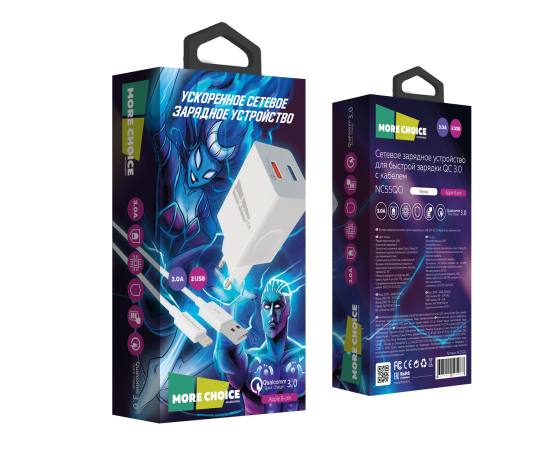 СЗУ Smart 2USB 3.0A QC3.0 быстрая зарядка для Lighting 8-pin More choice NC55QCi (White)