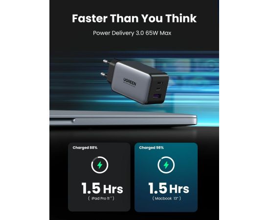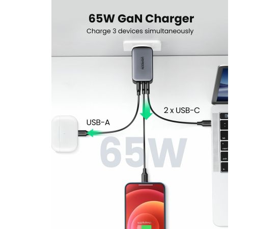 СЗУ Ugreen CD244 (10335) Nexode USB-A+2*USB-C 65W GaN Tech Fast Charger EU grey