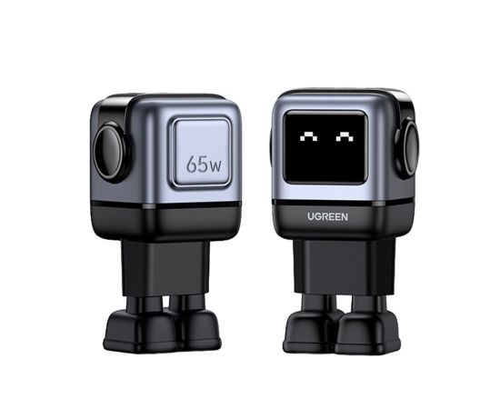 СЗУ UGREEN CD361 (25685B) USB-A+2*USB-C 65W Nexode Robot GaN Tech Fast Charger Gray