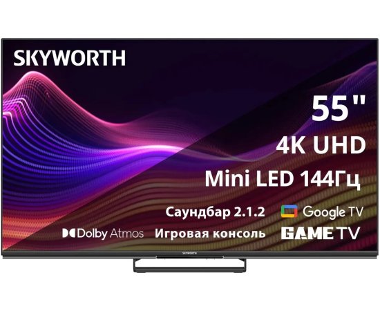 Телевизор Skyworth 55X87G QD-Mini LED Magic Sound Game TV Frameless черный 4K Ultra HD 144Hz MEMC DVB-T DVB-T2 DVB-C DVB-S DVB-S2 USB WiFi