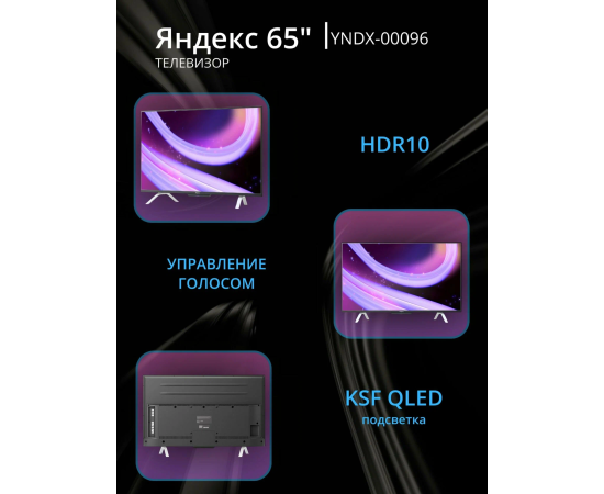 65" Телевизор YANDEX YNDX-00096 черный 3840x2160, Frameless, 4K Ultra HD, 60 Гц, WIFI, SMART TV, 2 x 8 Вт, ТВ Станция с Алисой