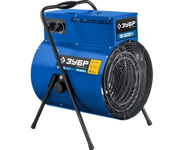 Электрическая тепловая пушка ЗУБР Профессионал 15 кВт ТП-П15 эффективна для быстрого и направленного обогрева складских и производственных помещений, ангаров и мастерских, благодаря большой площади нагревательных элементов и мощным двигателем вентилятора.
