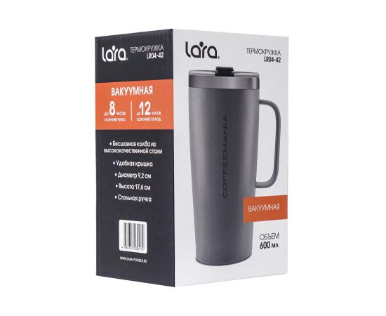 Универсальная вакуумная термокружка увеличенного объема LARA LR04-42. Удобно брать с собой на прогулку, в поездку, офис, укомплектована трубочкой – идеальный выбор для тех, кто любит наслаждаться напитком даже в движении. Благодаря двойным стенкам и вакуумной крышке сохраняют тепло до 8 часов, а холод до 12. Кружка открывается в двух режимах. Внутри кружка выполнена из пищевой нержавеющей стали, за ней легко ухаживать. Для большего удобства дополнена удобной ручкой.