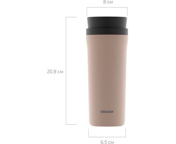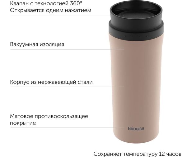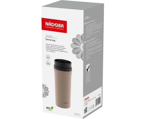 Термокружка бежевая, 0,5 л, NADOBA JUTA, нержавеющая сталь, 735313 подойдет для работы, прогулок и путешествий.