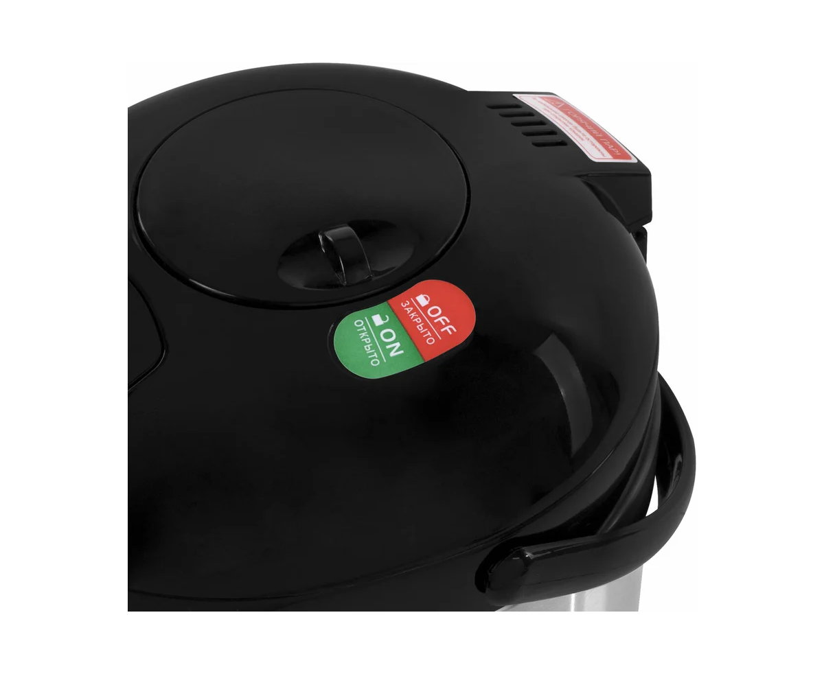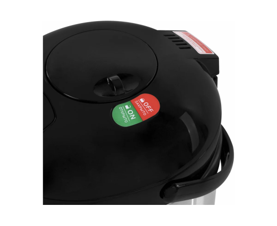 На корпусе размещена шкала уровня воды для контроля объема жидкости. Корпус дополнен прочной ручкой для удобного переноса устройства. Модель имеет вращающуюся подставку – вы можете поворачивать термопот в любую сторону, не поднимая над столом.