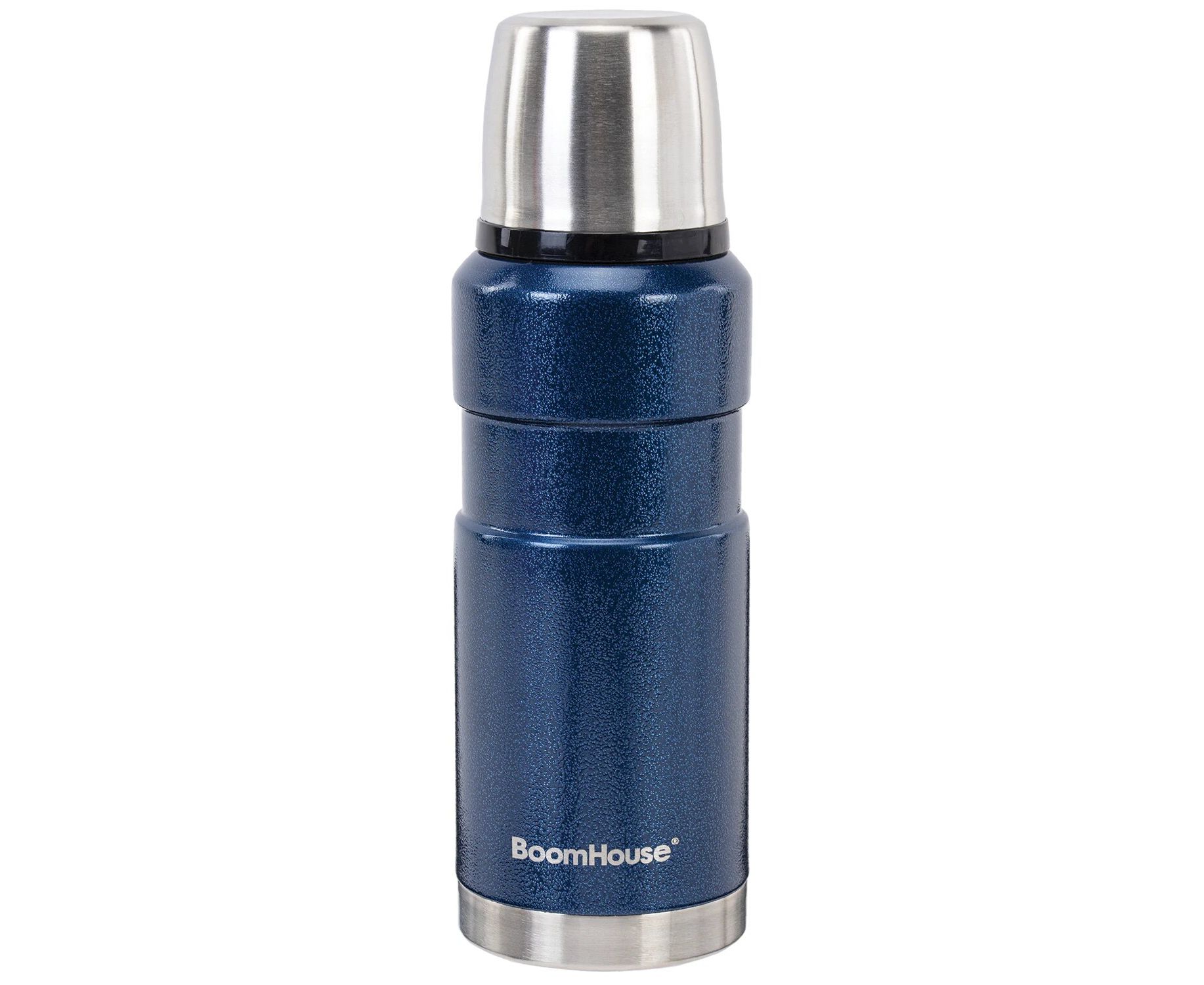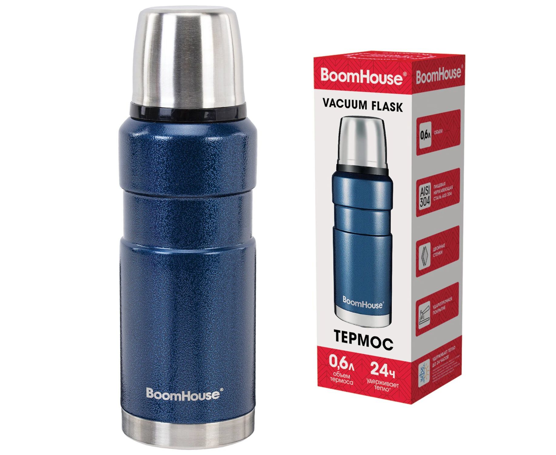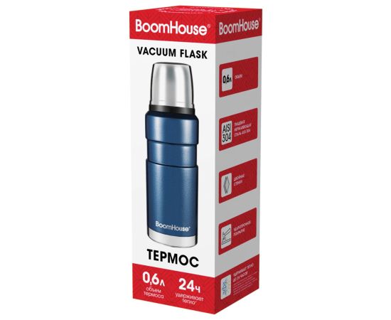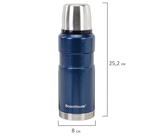 Термос BOOMHOUSE 700309 0,6л Darkblue, нержавеющая сталь SUS304, молотковая эмаль, крышка/кружка, синий