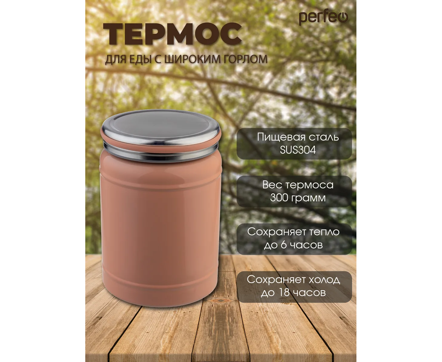 Термос для еды PERFEO с широким горлом, объем 0,4 л., розовый, (Арт. PF_E2318)