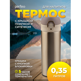 Термос для напитков PERFEO с крышкой-поилкой, ситечком, объем 0,35 л., золото, (Арт. ...