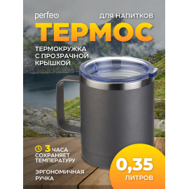 Акция !!! Термокружка для напитков PERFEO с прозрачной крышкой, ручкой, объем 0,35 л....