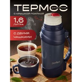 Термос для напитков PERFEO с пробкой-кнопкой, объем 1 л., нержавеющая сталь, (Арт. PF...