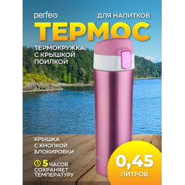 Термос для напитков PERFEO с крышкой-поилкой, объем 0,45 л., розовое золото, (Арт. PF...