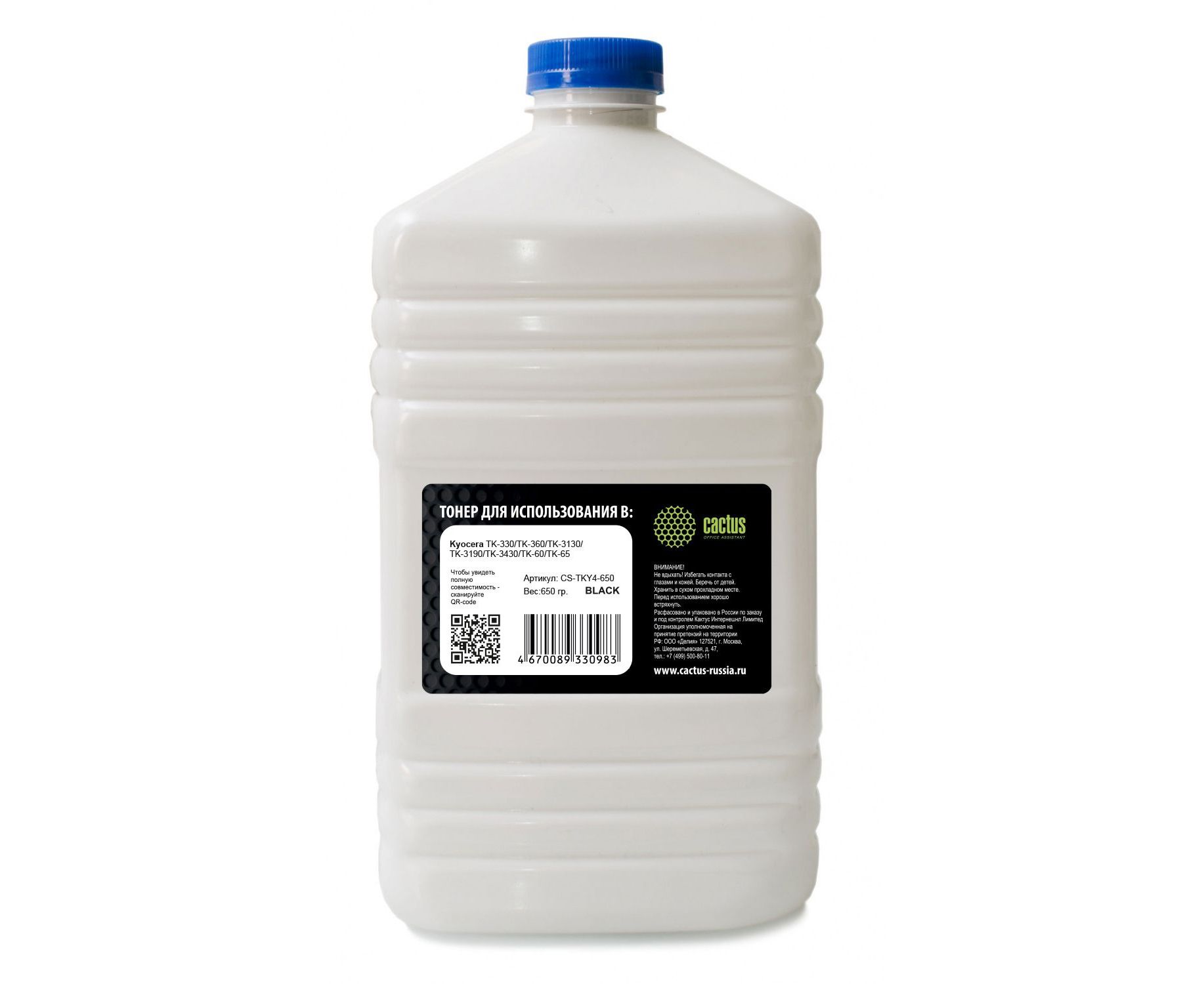 Тонер Cactus CS-TKY4-650 черный флакон 650гр для принтера Kyocera TK-330/TK-360/TK-3130/TK-3190/TK-3490 (для высокоскоростных машин серии 3xxx)