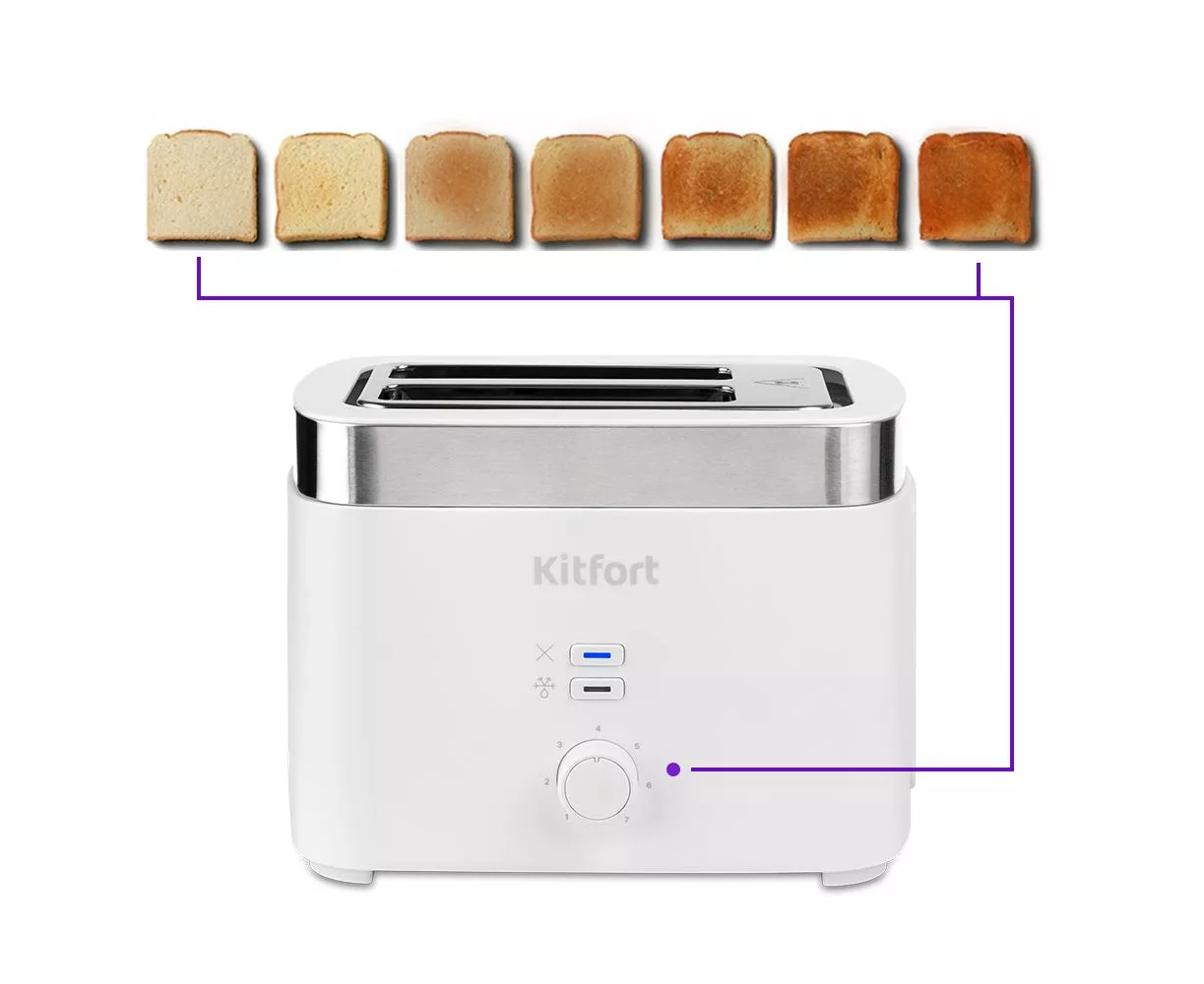 Электрический тостер Kitfort КТ-4025 создан для тех, кто любит полакомиться ароматным и хрустящим поджаренным хлебом. Особый вкус и цвет корочки тостов получаются благодаря карамелизации сахара, содержащегося в муке, при нагреве в процессе приготовления.