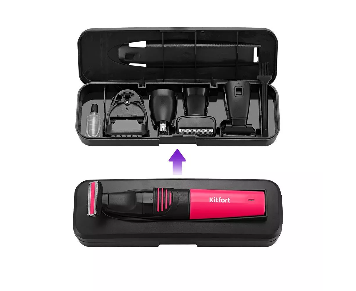 Триммер Kitfort КТ-3139-1 черный/розовый (насадок в компл.4шт)