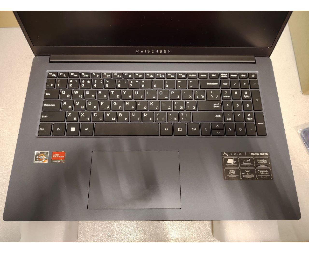 УЦ Ноутбук Maibenben Medio M17A M17A-R343UMF1SLURE3 Ryzen 3 4300U 16Gb SSD 512Gb AMD Radeon Graphics 17,3 FHD (плохая упаковка, замена SSD)