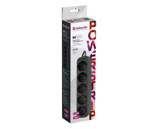Сетевой фильтр DEFENDER M530 3.0 м, 5 розеток, черный (99330)