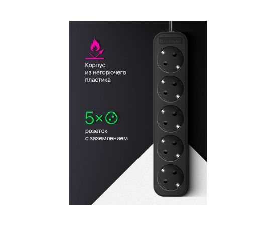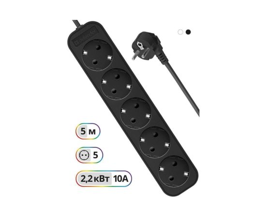Сетевой фильтр DEFENDER M550 5.0 м, 5 розеток, черный (99331)