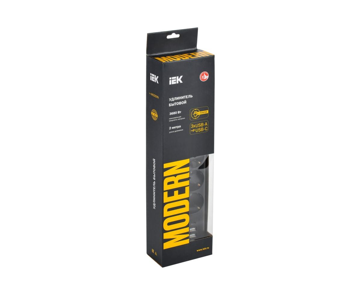 Удлинитель Iek WYP12-16-05-02-ZKU-K01 Modern У05В с/з 2м 3х1мм2 16А/250В USB х4 белый