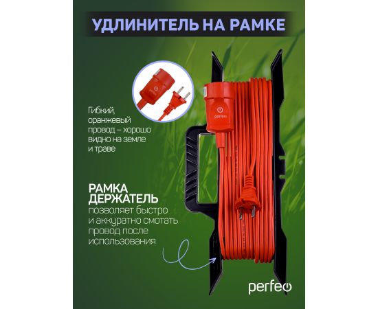 Удлинитель на рамке Perfeo «RuPower» - спасение в ситуациях, когда стандартной длины шнура питания становится недостаточно. н идеально подойдет для подключения ремонтного, строительного и другого оборудования. Гибкий оранжевый провод – хорошо видно на земле и траве. Медный провод обладает большим запасом надежности и меньшей потерей мощности при нагреве.