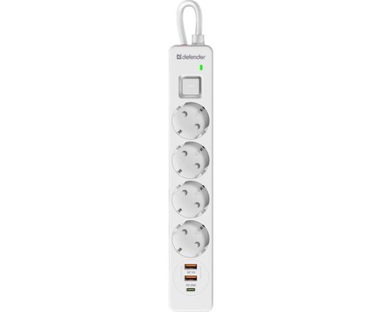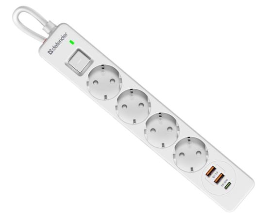 Сетевой фильтр DEFENDER с сетевым фильтром DFS 145 5 м, белый, 4розетки, USB+TypeC (99435)
