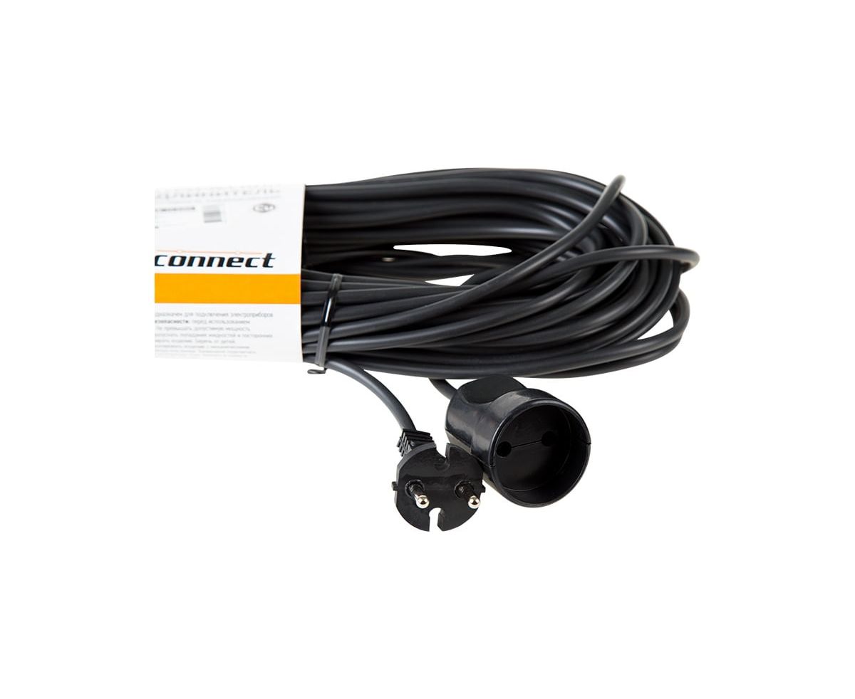 Силовой удлинитель PROconnect ПВС 2х0.75, 20 м, б/з, 6 А, 1300 Вт, IP20, черный Россия 11-7115 предназначен для подключения электрических приборов и электроинструмента, в случае, когда недостаточно стандартной длины шнура для питания от стационарных розеток.