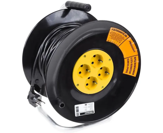 Удлинитель силовой PROconnect Standard 11-7607 3x1.0кв.мм 4розет. 50м ПВС 10A катушка черный