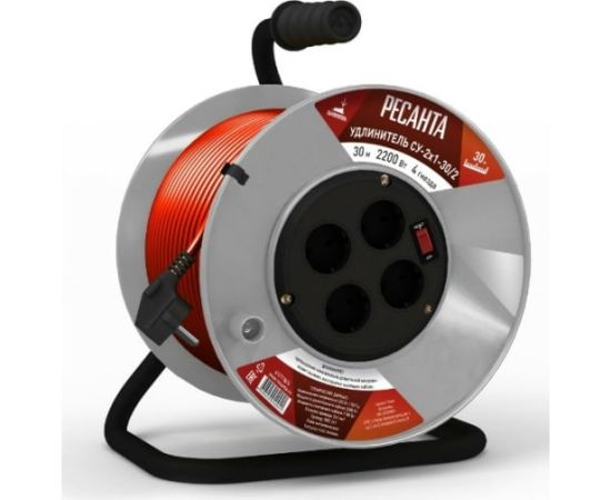 Удлинитель силовой Ресанта СУ-2х1-30/2 на катушке,с выкл., 4 розетки 61/118/4