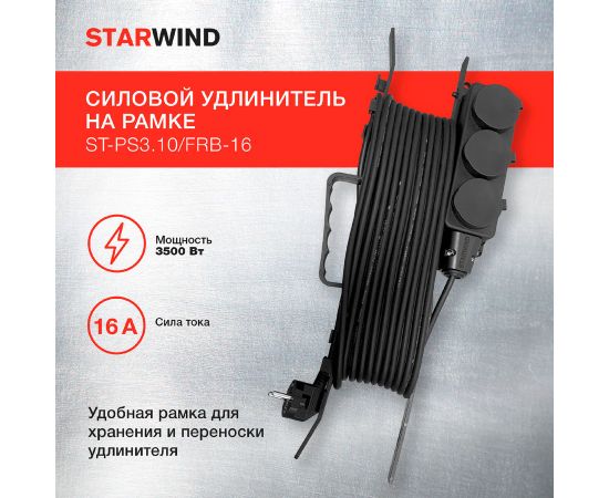 Удлинитель силовой Starwind ST-PS3.10/FRB-16 3x1.0кв.мм 3розет. пласт.рамка черный
