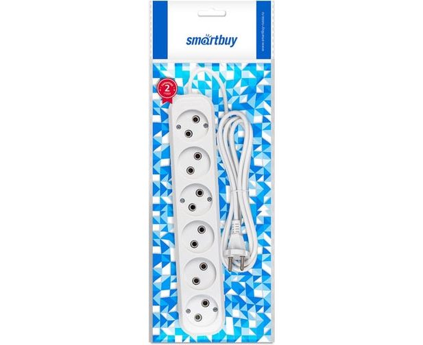 Удлинитель Smartbuy SBE-10-6-10-N 6 гнезд 10 метров 10А/2,2кВт без заземления ПВС 2х1,0