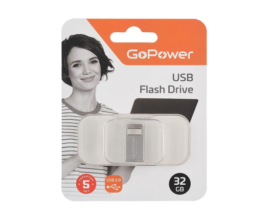 USB-флешка GoPower Mini (00-00027358) 32GB USB2.0 металл серебряный