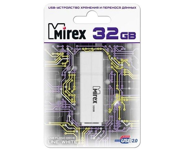 Flash Drive 32GB USB 2.0 Mirex Line, Белый (13600-FMULWH32)