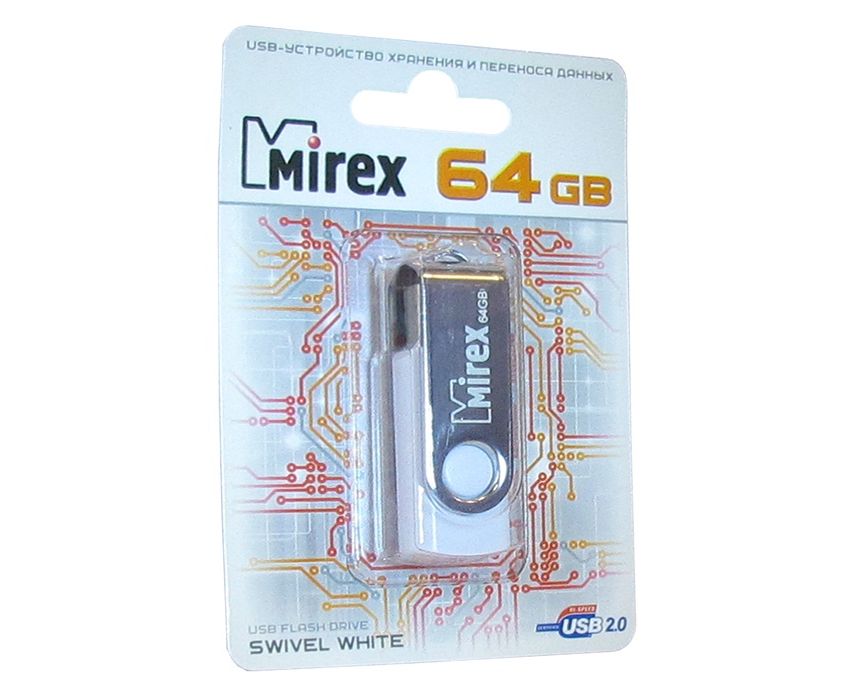 USB-флешка Mirex 13600-FMUSWT64 64GB Swivel, USB 2.0, Белый