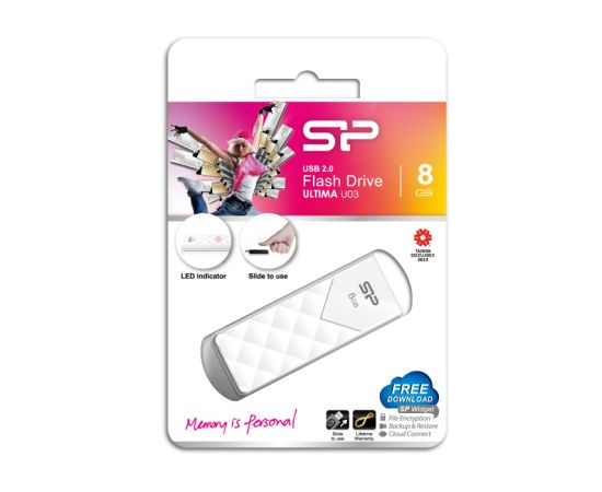 Flash Drive 8G USB 2.0 SiliconPower Ultima U03 White (SP008GBUF2U03V1W)