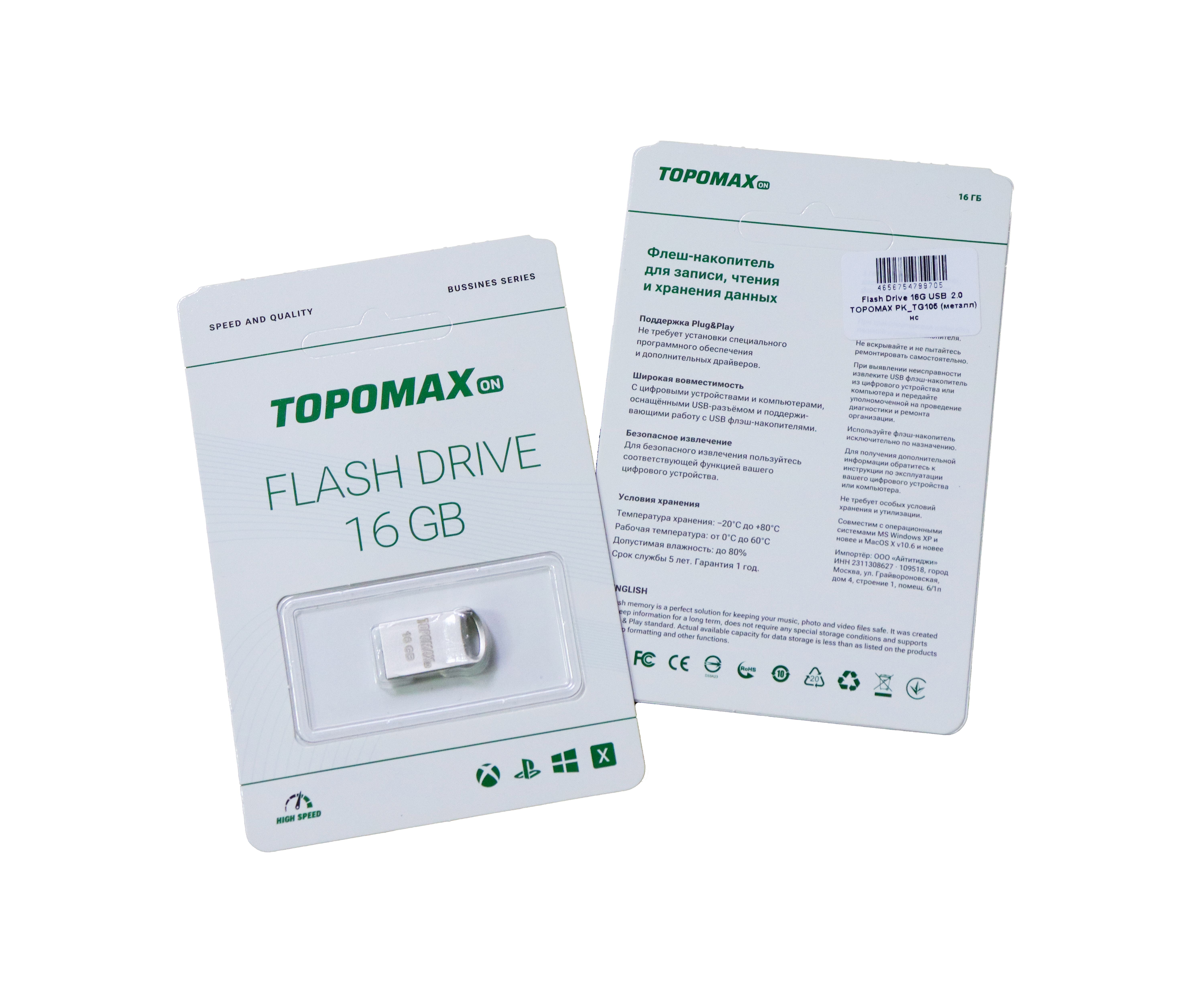 Flash Drive 16G USB 2.0 TOPOMAX PK_TG105 (металл) нс