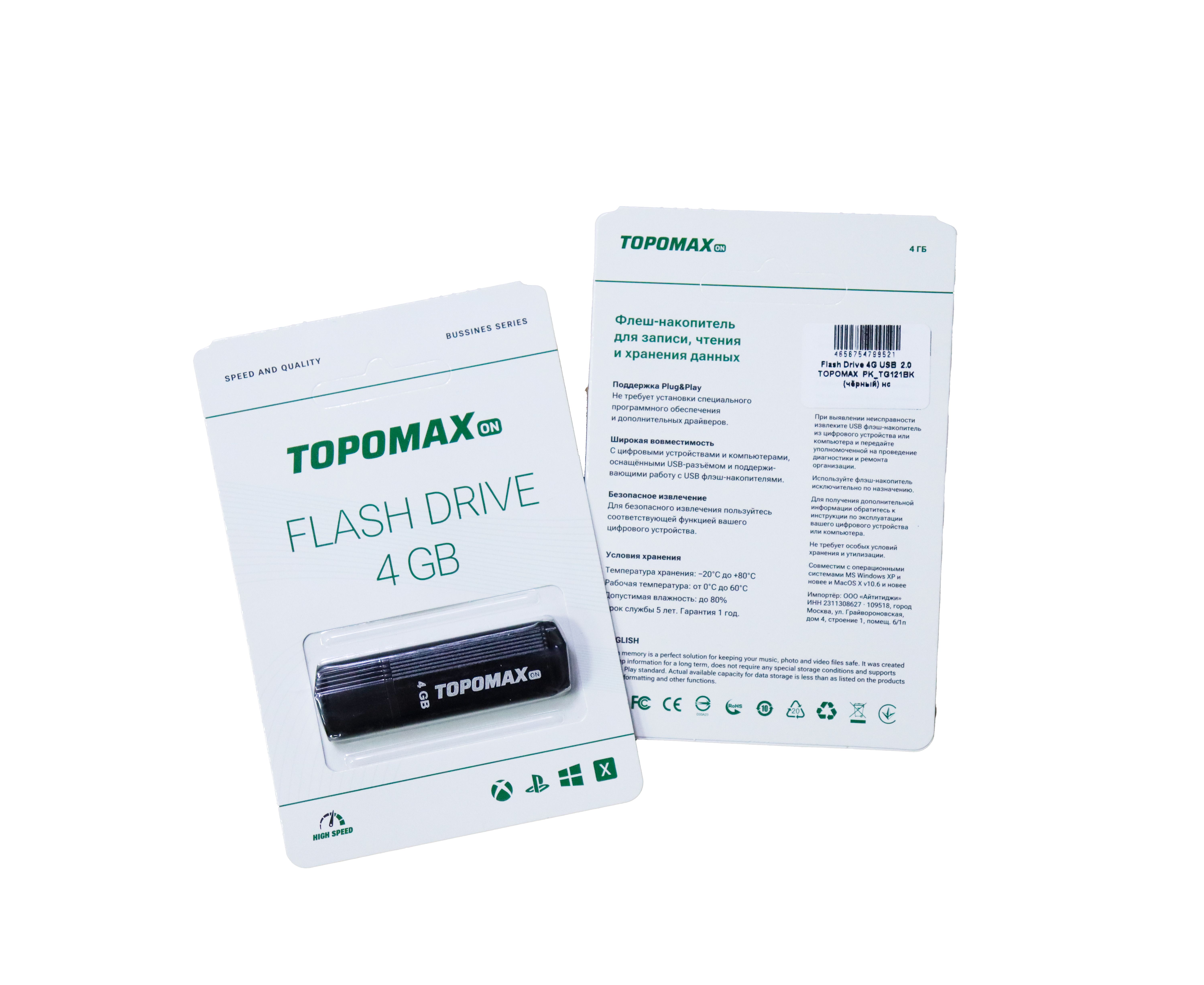 Flash Drive 4G USB 2.0 TOPOMAX PK_TG121BK (чёрный) нс