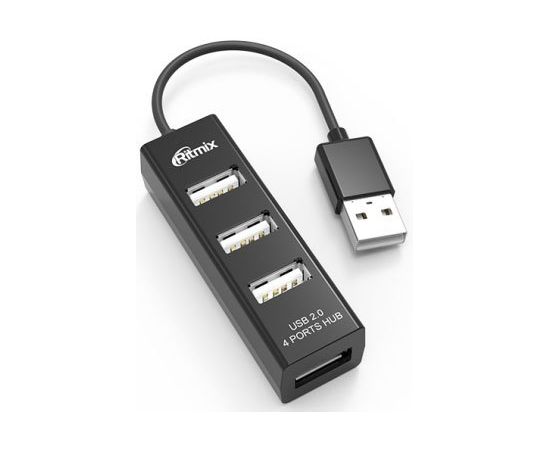 USB-HUB RITMIX CR-2402 black настольный, кабель, на 4 порта USB, High speed USB 2.0, Plug-n-Play, питание от USB, 5В, скорость до 480 Мбит/с